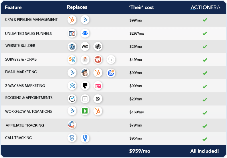 With the ACTIONERA marketing platform you can manage all of your marketing outside your app with all the needed tools to promote, sign up, communicate, activate funnels, automate your business, and more.